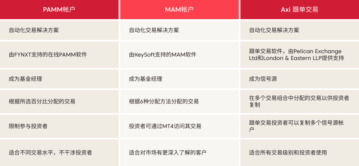 享有互惠条款及公平回报。Axi的PAMM服务经过了精心设计,旨在让所有参与者都实现盈利。其中包括PAMM经理、投资者以及PAMM介绍人计划的合作伙伴。